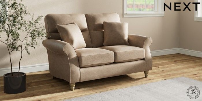 7.2.10 Ashford Highback 2 Seater Small Sofa Luxe Chenille Mid Camel Beige Low Turned - Light | Made Click here to use our website with more accessibility support, for example screen readers