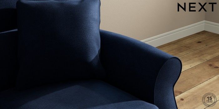 7.2.10 Ashford Highback 2 Seater Small Sofa Luxe Chenille Navy Blue Castor - Dark | Made Click here to use our website with more accessibility support, for example screen readers