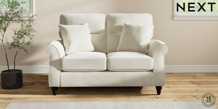 7.2.10 Ashford Highback 2 Seater Small Sofa Luxe Chenille Oyster Low Turned - Dark | Made Click here to use our website with more accessibility support, for example screen readers