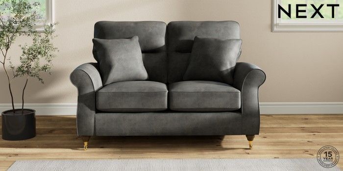 7.2.10 Ashford Highback 2 Seater Small Sofa Monza Faux Leather Easy Clean Dark Grey Castor - Mid | Made Click here to use our website with more accessibility support, for example screen readers