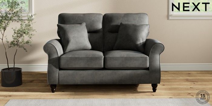 7.2.10 Ashford Highback 2 Seater Small Sofa Monza Faux Leather Easy Clean Dark Grey Low Turned - Dark | Made Click here to use our website with more accessibility support, for example screen readers