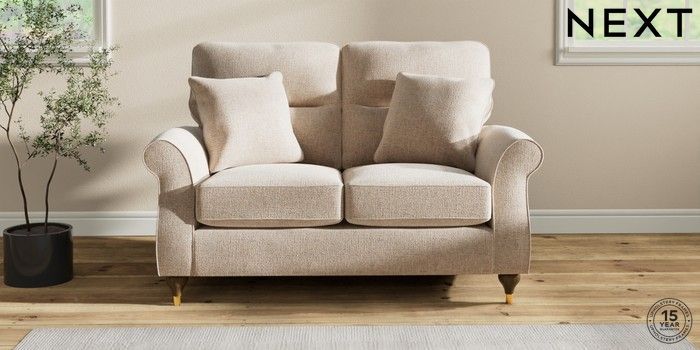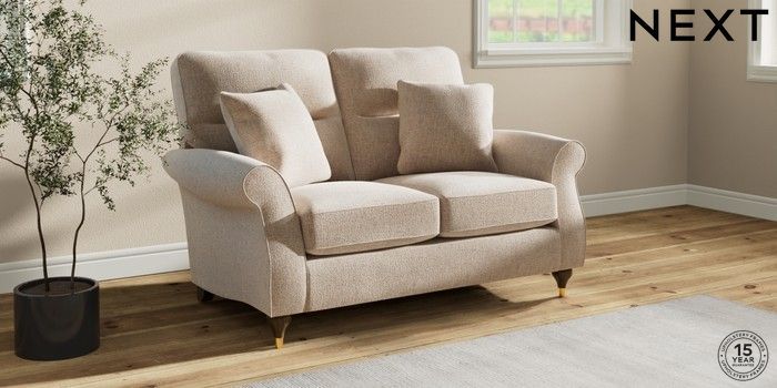 7.2.10 Ashford Highback 2 Seater Small Sofa Multi Weave Mid Natural Modern Turned Metal Cap - Mid | Made Click here to use our website with more accessibility support, for example screen readers