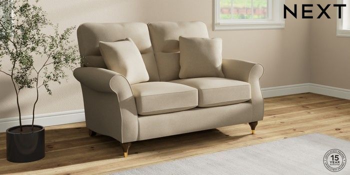7.2.10 Ashford Highback 2 Seater Small Sofa Natural Mix Light Natural Modern Turned Metal Cap - Mid | Made Click here to use our website with more accessibility support, for example screen readers