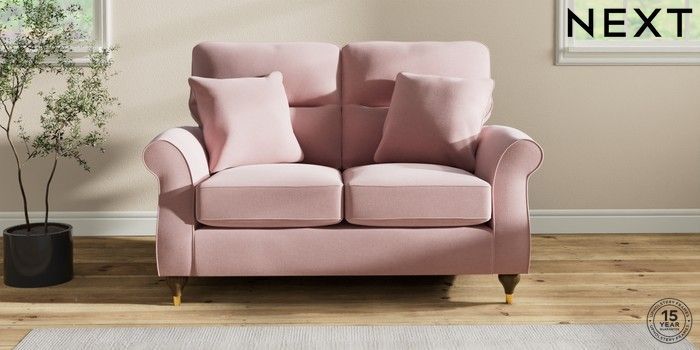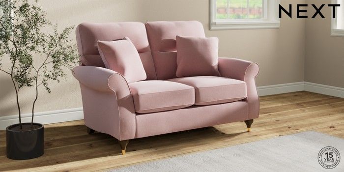 7.2.10 Ashford Highback 2 Seater Small Sofa Natural Mix Light Rose Pink Modern Turned Metal Cap - Mid | Made Click here to use our website with more accessibility support, for example screen readers