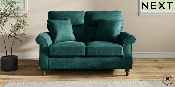 7.2.10 Ashford Highback 2 Seater Small Sofa Plush Chenille Dark Teal Green Low Turned - Mid | Made Click here to use our website with more accessibility support, for example screen readers