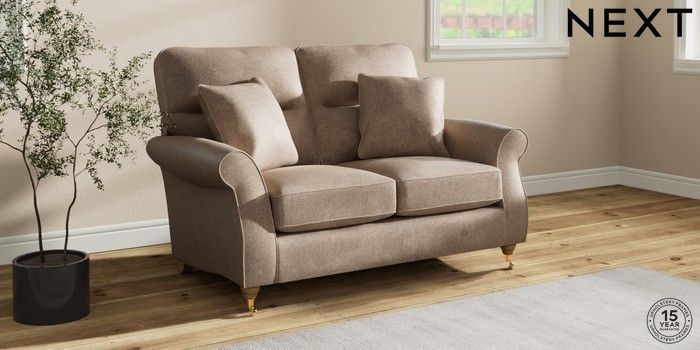 7.2.10 Ashford Highback 2 Seater Small Sofa Plush Chenille Mid Natural Castor - Light | Made Click here to use our website with more accessibility support, for example screen readers