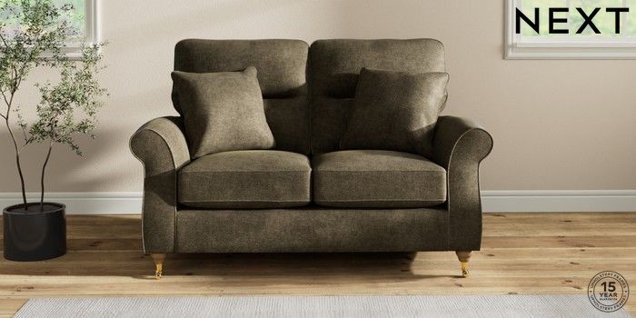 7.2.10 Ashford Highback 2 Seater Small Sofa Plush Chenille Moss Green Castor - Light | Made Click here to use our website with more accessibility support, for example screen readers