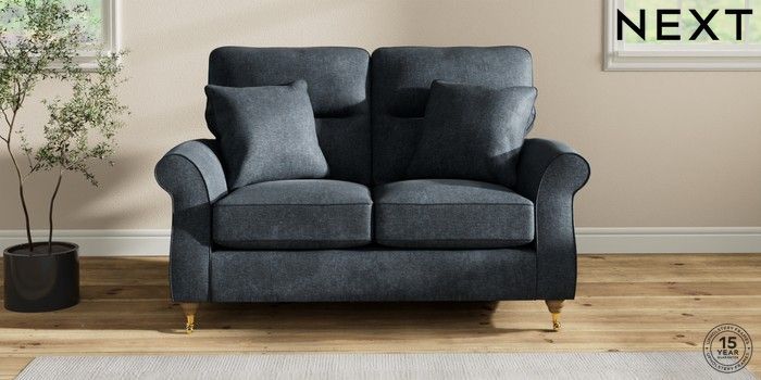 7.2.10 Ashford Highback 2 Seater Small Sofa Plush Chenille Slate Blue Castor - Light | Made Click here to use our website with more accessibility support, for example screen readers