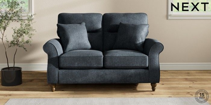 7.2.10 Ashford Highback 2 Seater Small Sofa Plush Chenille Slate Blue Low Turned - Mid | Made Click here to use our website with more accessibility support, for example screen readers