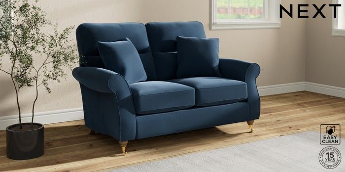 7.2.10 Ashford Highback 2 Seater Small Sofa Plush Velvet Easy Clean Airforce Blue Castor - Light | Made Click here to use our website with more accessibility support, for example screen readers