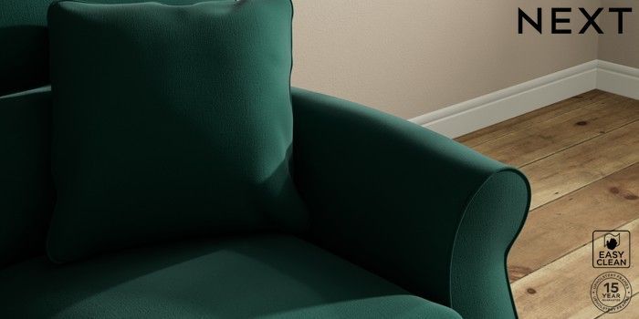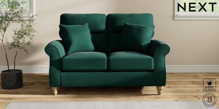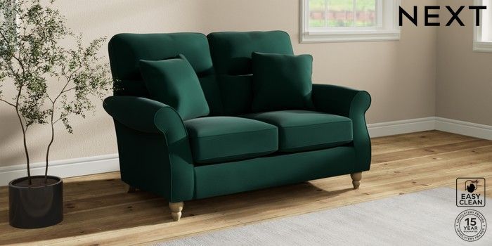 7.2.10 Ashford Highback 2 Seater Small Sofa Plush Velvet Easy Clean Bottle Green Low Turned - Light | Made Click here to use our website with more accessibility support, for example screen readers