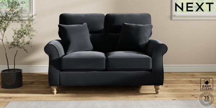 7.2.10 Ashford Highback 2 Seater Small Sofa Plush Velvet Easy Clean Charcoal Grey Low Turned - Light | Made Click here to use our website with more accessibility support, for example screen readers