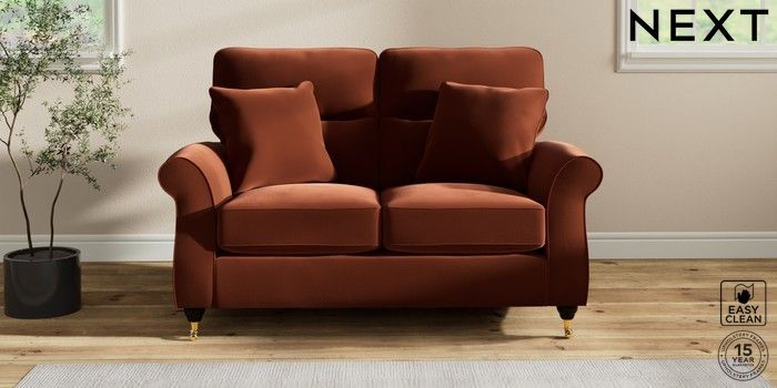 7.2.10 Ashford Highback 2 Seater Small Sofa Plush Velvet Easy Clean Ginger Orange Castor - Dark | Made Click here to use our website with more accessibility support, for example screen readers