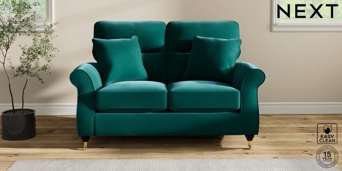 7.2.10 Ashford Highback 2 Seater Small Sofa Plush Velvet Easy Clean Juniper Green Castor - Dark | Made Click here to use our website with more accessibility support, for example screen readers