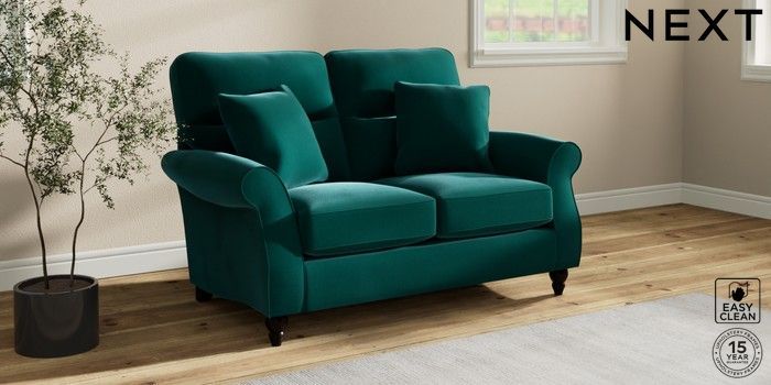 7.2.10 Ashford Highback 2 Seater Small Sofa Plush Velvet Easy Clean Juniper Green Low Turned - Dark | Made Click here to use our website with more accessibility support, for example screen readers