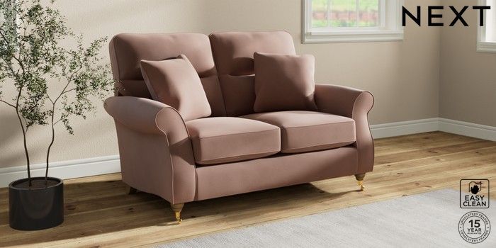 7.2.10 Ashford Highback 2 Seater Small Sofa Plush Velvet Easy Clean Mid Natural Castor - Light | Made Click here to use our website with more accessibility support, for example screen readers
