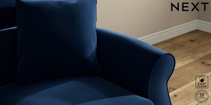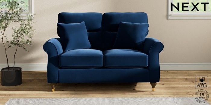 7.2.10 Ashford Highback 2 Seater Small Sofa Plush Velvet Easy Clean Navy Blue Modern Turned Metal Cap - Mid | Made Click here to use our website with more accessibility support, for example screen readers