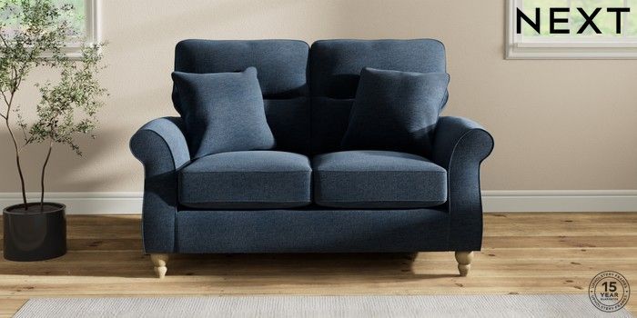 7.2.10 Ashford Highback 2 Seater Small Sofa Ripple Chenille Dark Blue Low Turned - Light | Made Click here to use our website with more accessibility support, for example screen readers