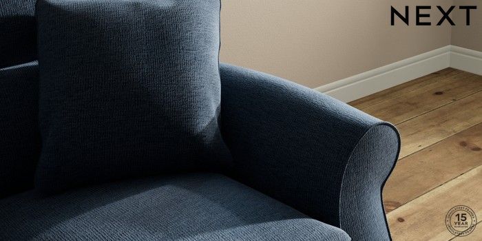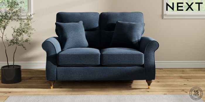 7.2.10 Ashford Highback 2 Seater Small Sofa Ripple Chenille Dark Blue Modern Turned Metal Cap - Mid | Made Click here to use our website with more accessibility support, for example screen readers