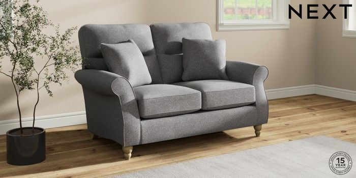 7.2.10 Ashford Highback 2 Seater Small Sofa Studio Chenille Mid Grey Low Turned - Light | Made Click here to use our website with more accessibility support, for example screen readers