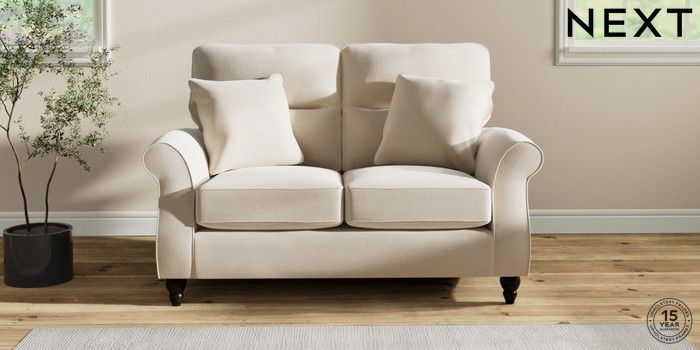 7.2.10 Ashford Highback 2 Seater Small Sofa Studio Chenille Oyster Low Turned - Dark | Made Click here to use our website with more accessibility support, for example screen readers