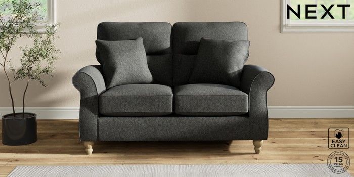 7.2.10 Ashford Highback 2 Seater Small Sofa Tweedy Blend Easy Clean Charcoal Grey Low Turned - Light | Made Click here to use our website with more accessibility support, for example screen readers