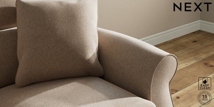 7.2.10 Ashford Highback 2 Seater Small Sofa Tweedy Blend Easy Clean Light Dove Natural Modern Turned Metal Cap - Mid | Made Click here to use our website with more accessibility support, for example screen readers