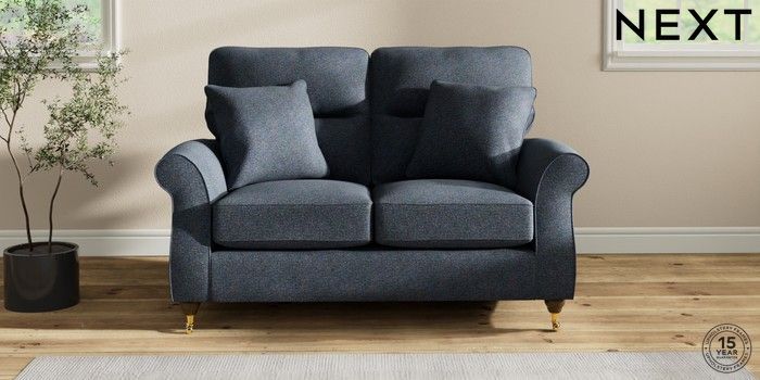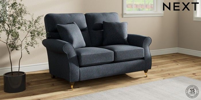 7.2.10 Ashford Highback 2 Seater Small Sofa Tweedy Chenille Navy Blue Castor - Mid | Made Click here to use our website with more accessibility support, for example screen readers