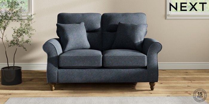 7.2.10 Ashford Highback 2 Seater Small Sofa Tweedy Chenille Navy Blue Low Turned - Mid | Made Click here to use our website with more accessibility support, for example screen readers