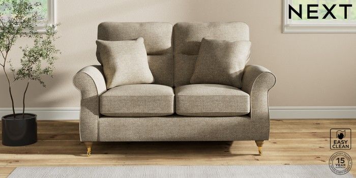7.2.10 Ashford Highback 2 Seater Small Sofa Woven Chenille Easy Clean Mid Natural Castor - Light | Made Click here to use our website with more accessibility support, for example screen readers