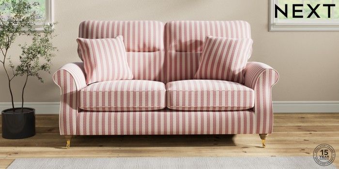 7.2.10 Ashford Highback 2 Seater Sofa Bold Chenille Stripe Dark Pink Castor - Light | Made Click here to use our website with more accessibility support, for example screen readers