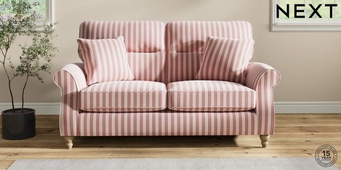7.2.10 Ashford Highback 2 Seater Sofa Bold Chenille Stripe Dark Pink Low Turned - Light | Made Click here to use our website with more accessibility support, for example screen readers