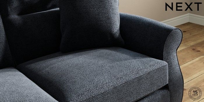 7.2.10 Ashford Highback 2 Seater Sofa Boucle Chenille Dark Slate Blue Modern Turned Metal Cap - Mid | Made Click here to use our website with more accessibility support, for example screen readers