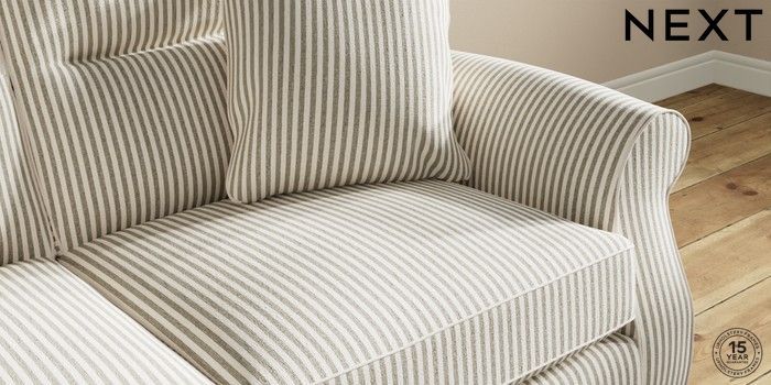 7.2.10 Ashford Highback 2 Seater Sofa Chenille Stripe Moss Green Castor - Mid | Made Click here to use our website with more accessibility support, for example screen readers