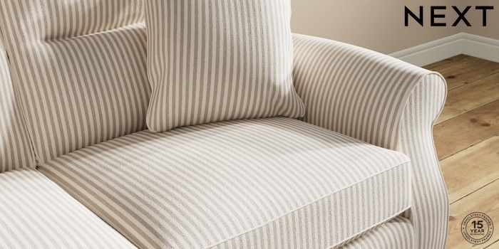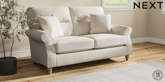 7.2.10 Ashford Highback 2 Seater Sofa Chenille Stripe Natural Low Turned - Light | Made Click here to use our website with more accessibility support, for example screen readers