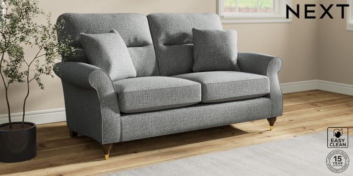 7.2.10 Ashford Highback 2 Seater Sofa Chunky Boucle Easy Clean Mid Grey Modern Turned Metal Cap - Mid | Made Click here to use our website with more accessibility support, for example screen readers