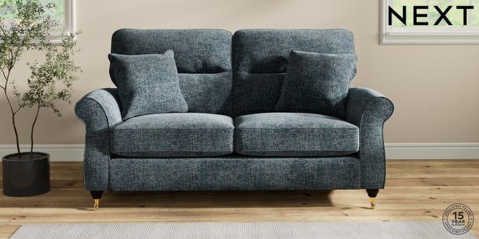 7.2.10 Ashford Highback 2 Seater Sofa Chunky Chenille Dark Navy Blue Castor - Dark | Made Click here to use our website with more accessibility support, for example screen readers