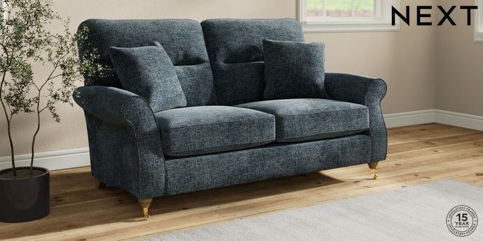 7.2.10 Ashford Highback 2 Seater Sofa Chunky Chenille Dark Navy Blue Castor - Light | Made Click here to use our website with more accessibility support, for example screen readers