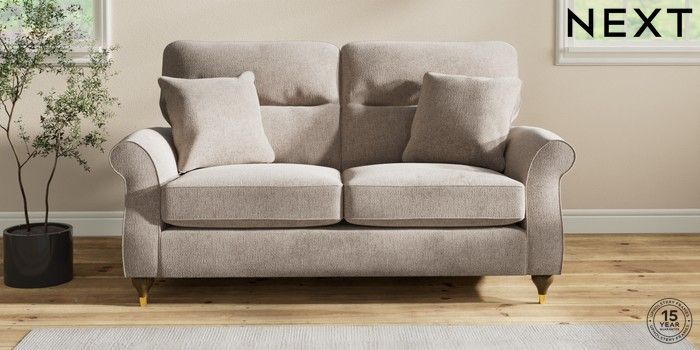 7.2.10 Ashford Highback 2 Seater Sofa Chunky Chenille Light Dove Modern Turned Metal Cap - Mid | Made Click here to use our website with more accessibility support, for example screen readers