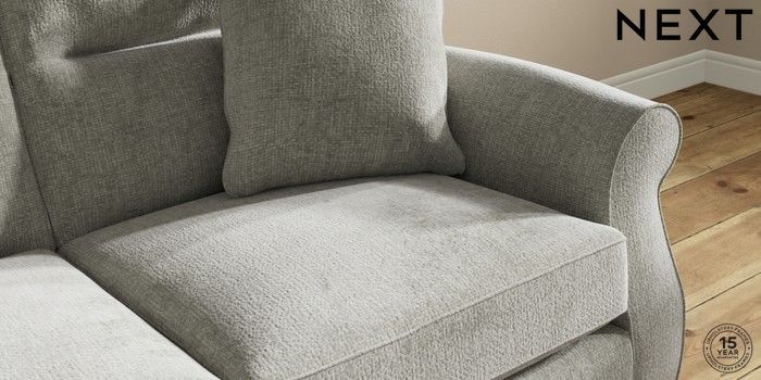 7.2.10 Ashford Highback 2 Seater Sofa Chunky Chenille Light Grey Modern Turned Metal Cap - Mid | Made Click here to use our website with more accessibility support, for example screen readers