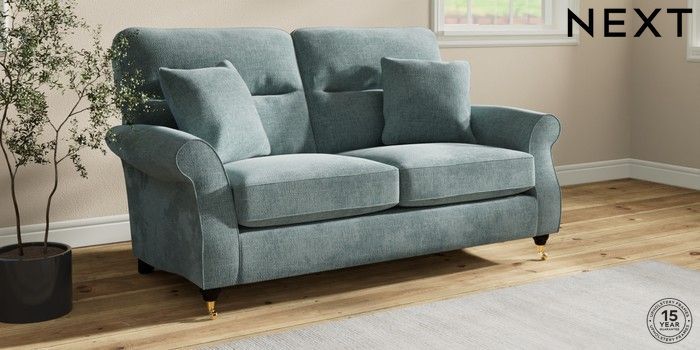 7.2.10 Ashford Highback 2 Seater Sofa Chunky Chenille Light Teal Green Castor - Dark | Made Click here to use our website with more accessibility support, for example screen readers