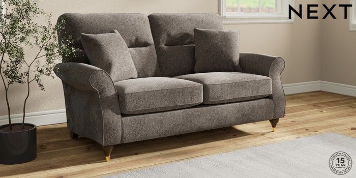 7.2.10 Ashford Highback 2 Seater Sofa Chunky Chenille Mink Brown Modern Turned Metal Cap - Mid | Made Click here to use our website with more accessibility support, for example screen readers