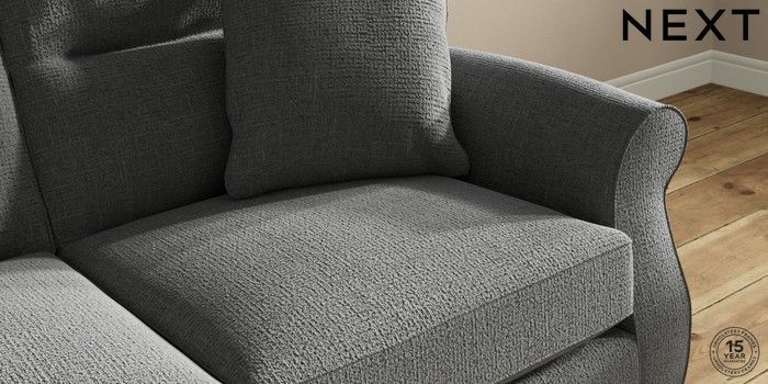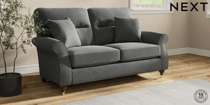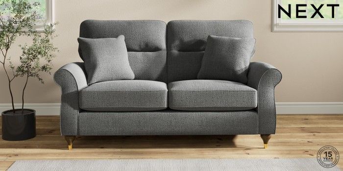 7.2.10 Ashford Highback 2 Seater Sofa Chunky Texture Dark Grey Modern Turned Metal Cap - Mid | Made Click here to use our website with more accessibility support, for example screen readers