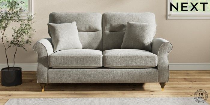 7.2.10 Ashford Highback 2 Seater Sofa Chunky Texture Dove Modern Turned Metal Cap - Mid | Made Click here to use our website with more accessibility support, for example screen readers