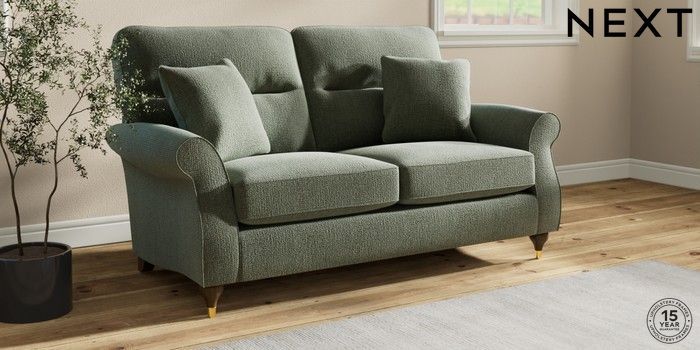 7.2.10 Ashford Highback 2 Seater Sofa Chunky Texture Mid Forest Green Modern Turned Metal Cap - Mid | Made Click here to use our website with more accessibility support, for example screen readers