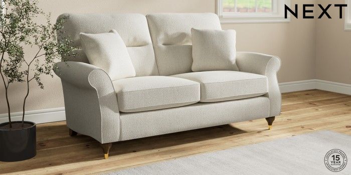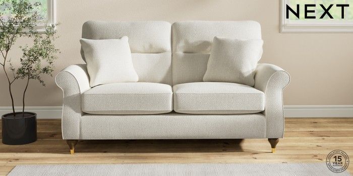 7.2.10 Ashford Highback 2 Seater Sofa Chunky Texture Oyster Modern Turned Metal Cap - Mid | Made Click here to use our website with more accessibility support, for example screen readers