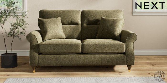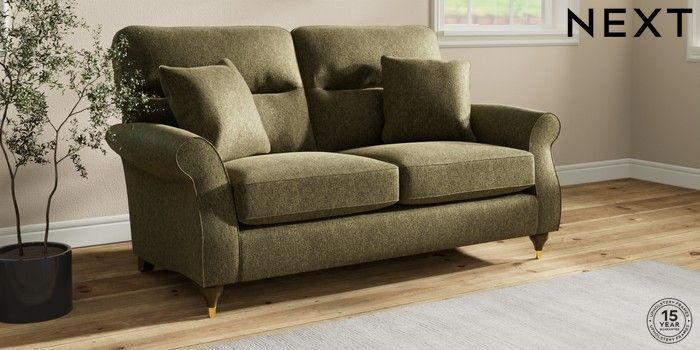 7.2.10 Ashford Highback 2 Seater Sofa Cotswold Chenille Dark Green Modern Turned Metal Cap - Mid | Made Click here to use our website with more accessibility support, for example screen readers