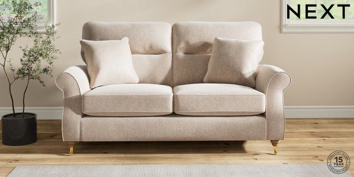 7.2.10 Ashford Highback 2 Seater Sofa Cotswold Chenille Light Natural Castor - Light | Made Click here to use our website with more accessibility support, for example screen readers