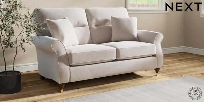 7.2.10 Ashford Highback 2 Seater Sofa Cotswold Chenille Oyster Modern Turned Metal Cap - Mid | Made Click here to use our website with more accessibility support, for example screen readers