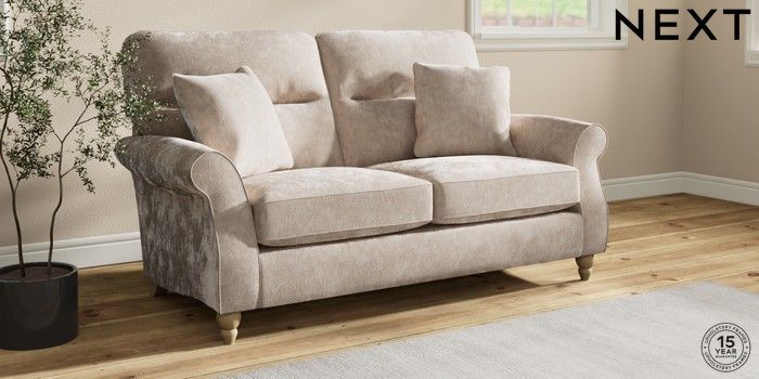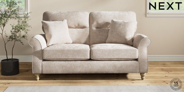 7.2.10 Ashford Highback 2 Seater Sofa Distressed Velour Mid Natural Low Turned - Light | Made Click here to use our website with more accessibility support, for example screen readers